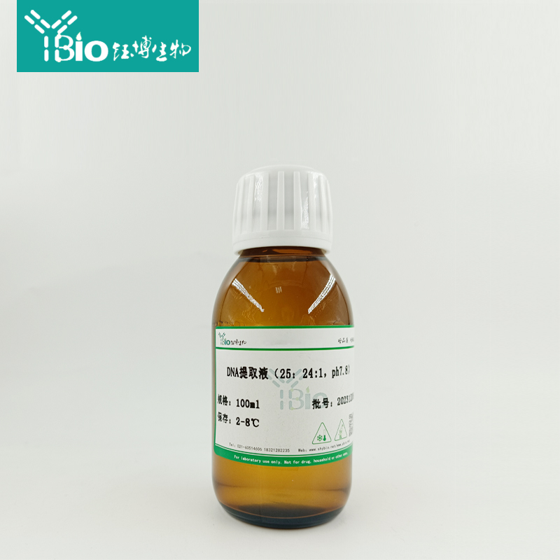 本试剂是按 25:24:1 的体积比混合而成的,主要用于基因组 DNA 的提取等试验。苯酚使蛋白质变性,同时抑制了 DNase 的降解作用。有机相与液相分层,去除核酸溶液中的迹量酚。减少蛋白质变性操作过程中产生的气泡。使用离心后的上层为含 DNA 的水相、中间为变性蛋白相,下层为有机溶剂相。静置后产品有分层,是正常现象。上层十分之一体积为保护液,不可使用,不可去除,直接吸取下层使用。